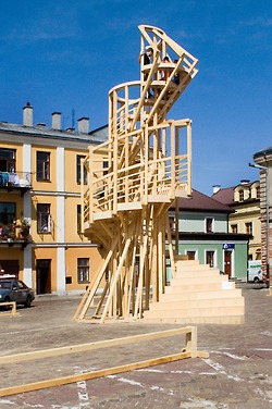 In order to celebrate its 10 years of activity, the artistic centre Lungomare in Bolzano Italy has recruited the ConstructLab/exyzt team composed by Alexander Römer, Gonzague Lacombe, Patrick Hubmann and Mattia Paco Rizzi. The result is the creation of Teatro del Mare, a wooden temporary structure, both a contemporary stage and street furniture, hosting a series of events, meetings and screenings until the end of June.
