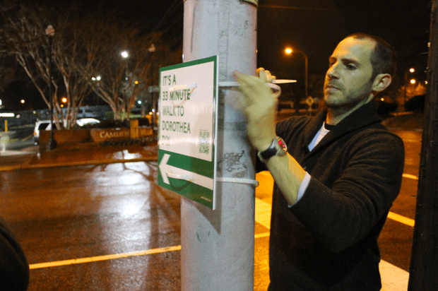 The signs, the brainchild of then-graduate student Matt Tomasulo, were meant to help people think differently about distances in the city, and to encourage them to get out of their cars and explore the place under their own power.When it debuted in 2012, the project drew international notice and received lots of favorable press coverage, including here on CityLab. It also got the attention of Raleigh’s city government, which eventually took the signs down for violating local ordinances. But the city’s planning director was a fan of the concept behind Tomasulo’s action, and soon they reached a compromise. The signs went back up, with the blessing of the city, as a pilot education project.