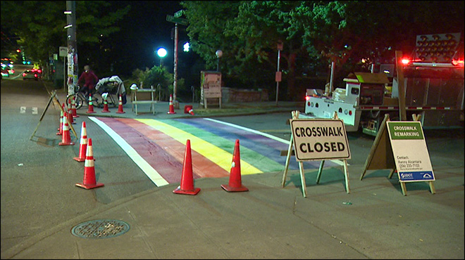 Several Seattle crosswalks are getting a new rainbow-colored coat of paint to celebrate Pride Week, and the city is planning to make them permanent.