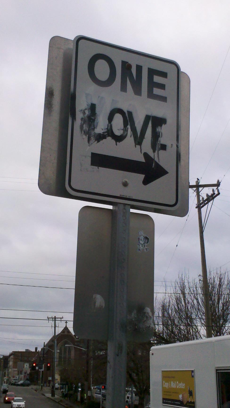 While I don’t condone defacing public street signs, I liked the sentiment. It made me think about how easy it is to make people smile and make a space more friendly with a word.