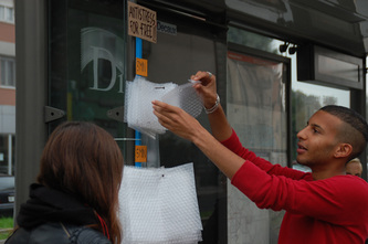 That question, among others, inspired artists Lisa Park and Adria Navarro to take these digital love notes and turn them back into physical markers. The pair made oversize stickers based on Missed Connections posts, then affixed them at the exact spot where the missed connection occurred. They document the entire project, called I Wish I Said Hello, online, completing the loop.